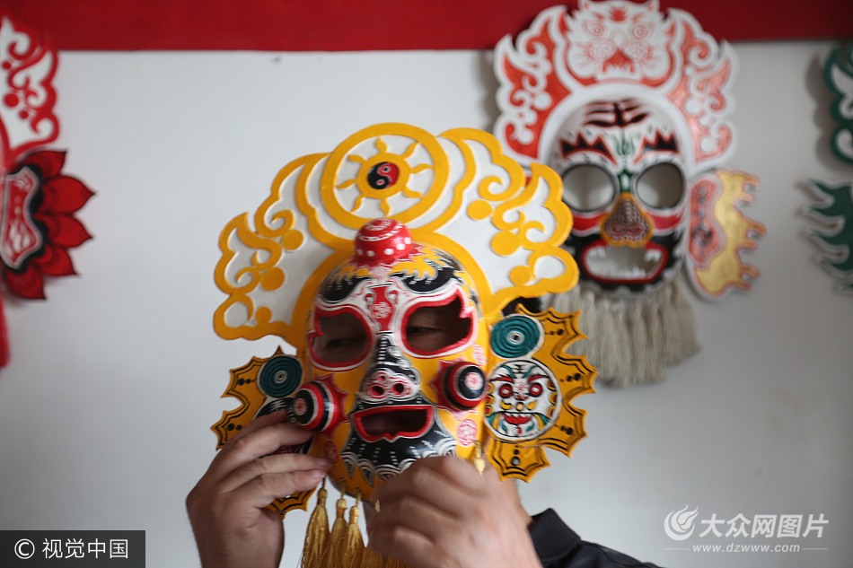 2017年8月1日,在山東濟(jì)南天橋區(qū)萬盛街社區(qū),40多歲的侯志新師傅在家中掛忙了數(shù)百個候氏社火臉譜。稱自己十分喜歡癡迷畫社火臉譜,并且是第六代氏社火臉譜傳人,10余年時間在家中畫了有1萬余個社火臉譜,并且免費(fèi)收徒都有千余名了。