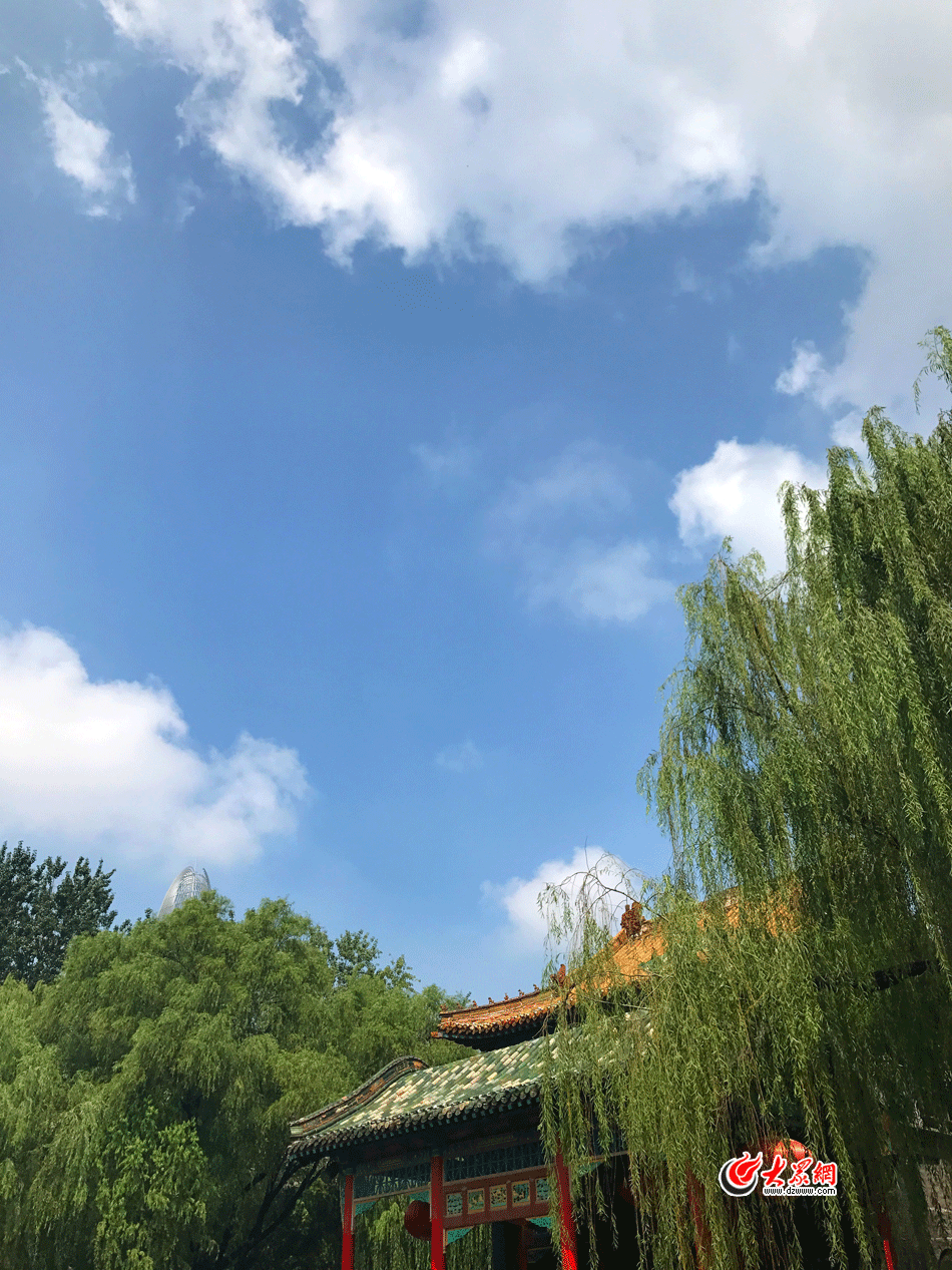 經(jīng)歷了連續(xù)幾天的陰雨蒙蒙,8月3日,濟(jì)南終于迎來了艷陽天,藍(lán)天白云映襯著綠樹。不少市民和游客選擇外出游玩,享受好天氣,欣賞美景。(大眾網(wǎng)-山東24小時(shí)客戶端記者 王長坤 張瑪睿 于文婷 實(shí)習(xí)生 張珈瑋 攝)