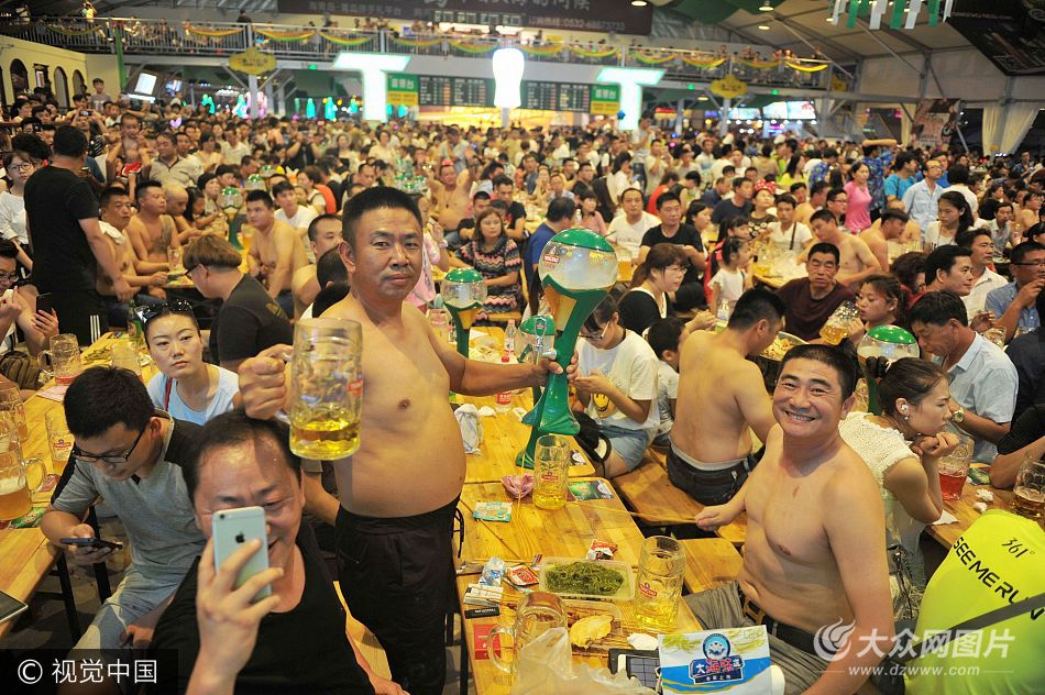 2017年8月5日,第27屆青島國際啤酒節(jié)開幕第二天,恰逢周末,青島金沙灘啤酒城迎來首次客流高峰,演出廣場、各啤酒大棚和廣場都有眾多游客和市民觀看演出、暢飲啤酒和觀光游玩,整個(gè)啤酒城歡樂嗨翻天。