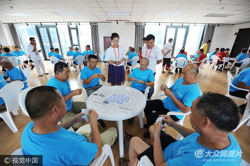 8月12日,青島,青島市李滄區(qū)全國(guó)“夠級(jí)”撲克競(jìng)賽預(yù)賽現(xiàn)場(chǎng),參賽隊(duì)伍選手在爭(zhēng)奪決賽權(quán)。