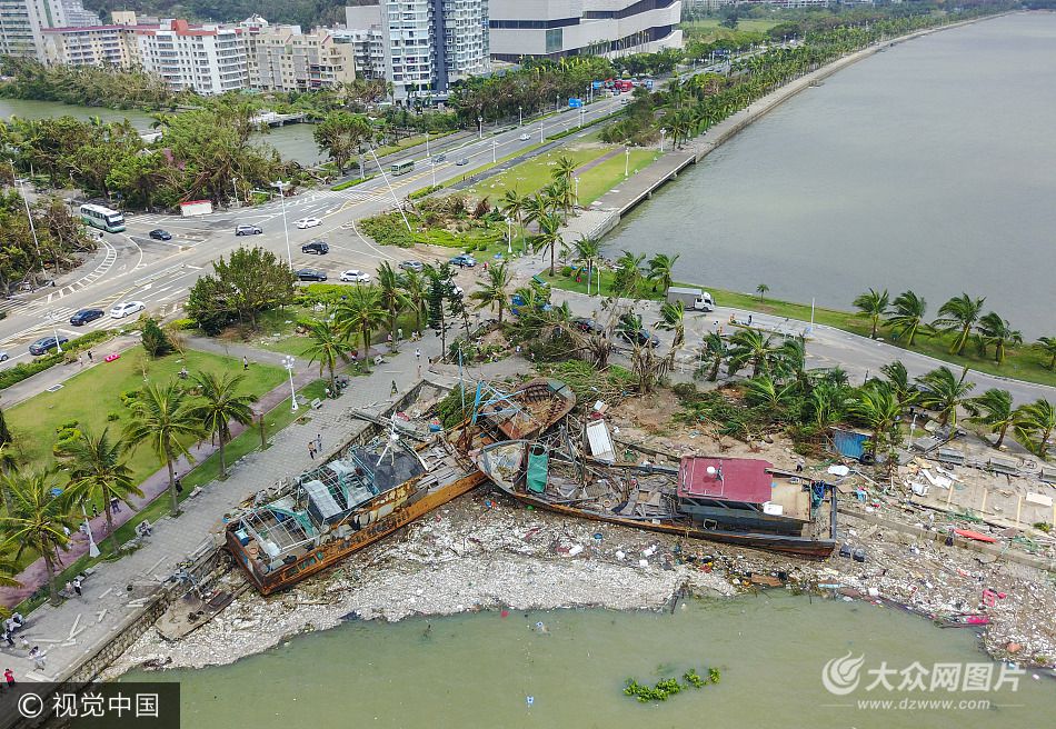 2017年8月23日中午,臺風“天鴿”在珠海市登陸,帶來狂風暴雨。情侶路是珠海的城市象征,在此次臺風吹襲中遭受重創(chuàng)。組圖為24日的情侶路。
