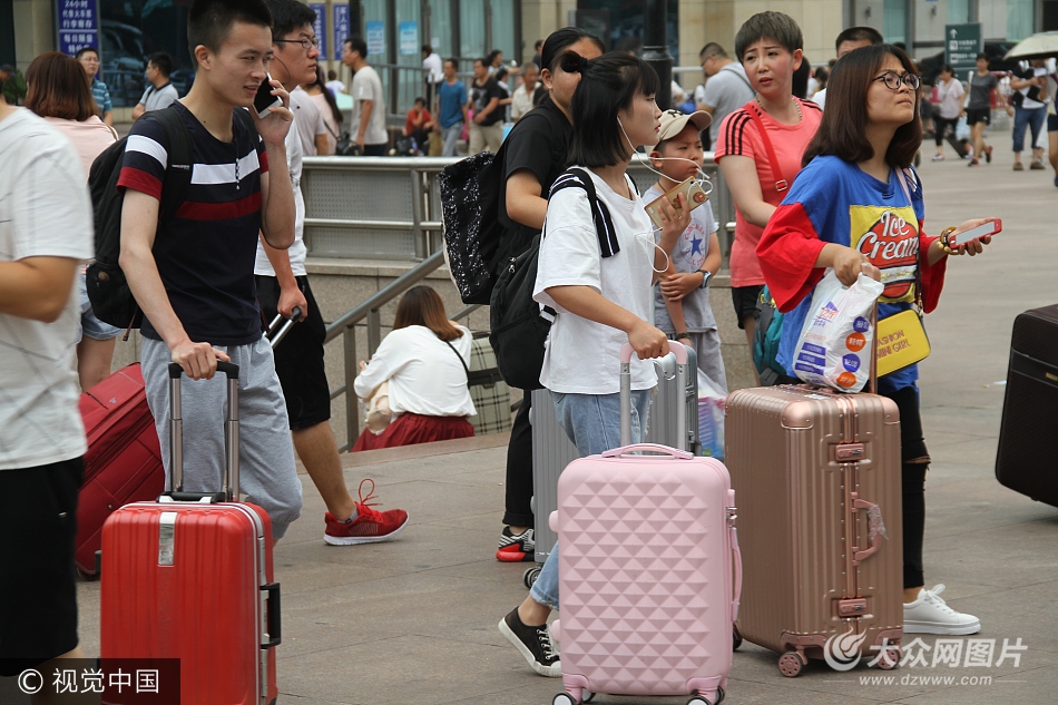 2017年8月25日,在山東濟(jì)南火車站出站口,大學(xué)生返?土鞒芍髁鳌kS著各大院校陸續(xù)開學(xué),濟(jì)南火車站學(xué)生返校客流成主流。據(jù)了解,由于各大高校陸續(xù)開學(xué)返校時(shí)間比較集中,加上旅游流、探親流的相互疊成為主流。