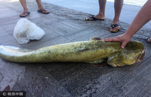 浙江村民釣起1米長(zhǎng)鯰魚 花3小時(shí)拉出水