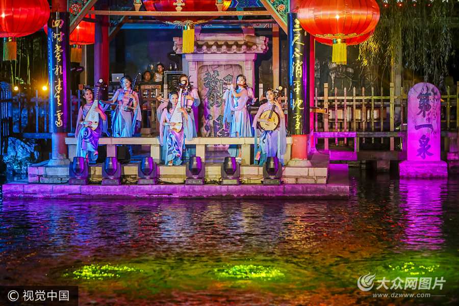 2017年9月7日消息,濟(jì)南。9月7日晚,一場(chǎng)民族音樂會(huì)在濟(jì)南趵突泉畔奏響,以慶祝泉水持續(xù)噴涌14周年。