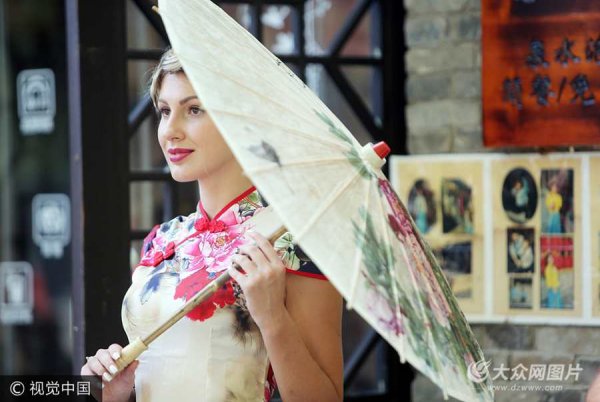 洋妞穿旗袍裝亮相濟南老街
