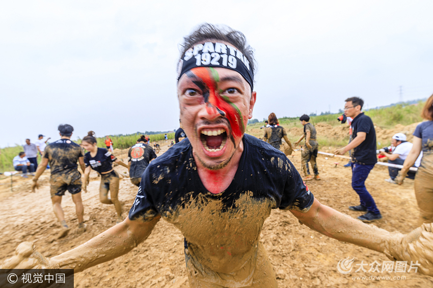 9月10日,青島市,作為全球最大的障礙賽的斯巴達(dá)勇士賽,2017英菲尼迪斯巴達(dá)勇士賽青島站今天9月10日中德生態(tài)園開賽。雖然一直下著連綿細(xì)雨,選手們還是斗志昂揚(yáng)地喊著號(hào)子沖刺。