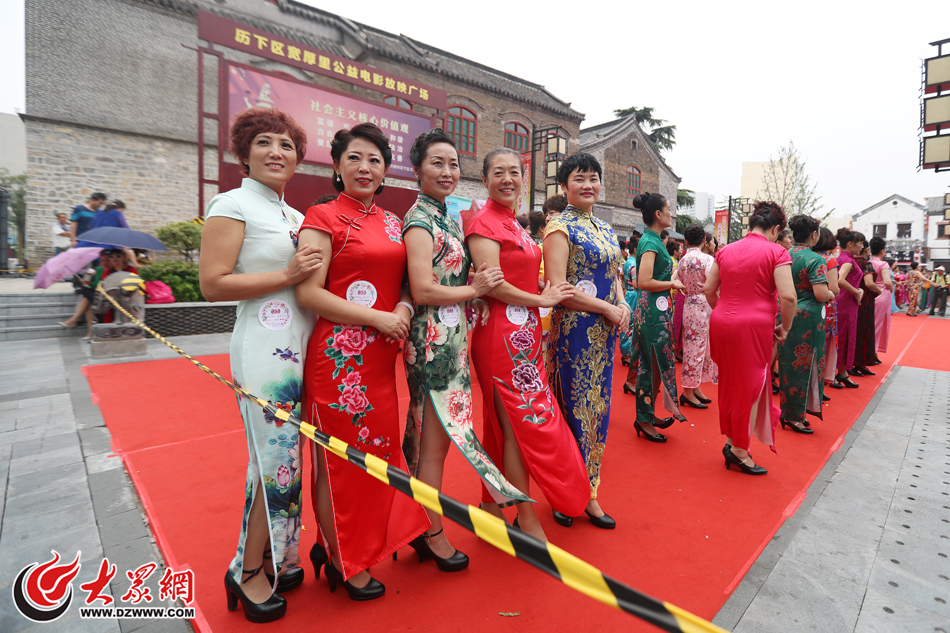 大眾網(wǎng)濟南9月16日訊 今天下午,濟南寬厚里舉行了一場旗袍嘉年華,據(jù)了解,共有200名大媽身穿各式各樣的旗袍,在這里走秀、拍照,引來不少路人圍觀。(攝影記者 丌祥)