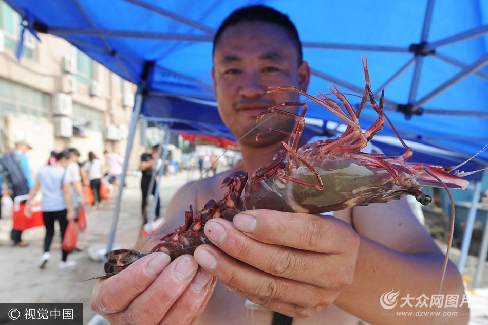 9月19日,山東省青島市,一只約4兩重、體長(zhǎng)在26公分的野生大蝦被漁民捕獲,在漁港市場(chǎng)售價(jià)僅50元。據(jù)漁民講,現(xiàn)在很難捕到如此個(gè)大的海蝦,可稱得上是“蝦王”,個(gè)體小點(diǎn)的野生海捕大蝦每只售價(jià)在5-8元左右,皮皮蝦的產(chǎn)量較高,在碼頭市場(chǎng)上最低售價(jià)15元2斤。