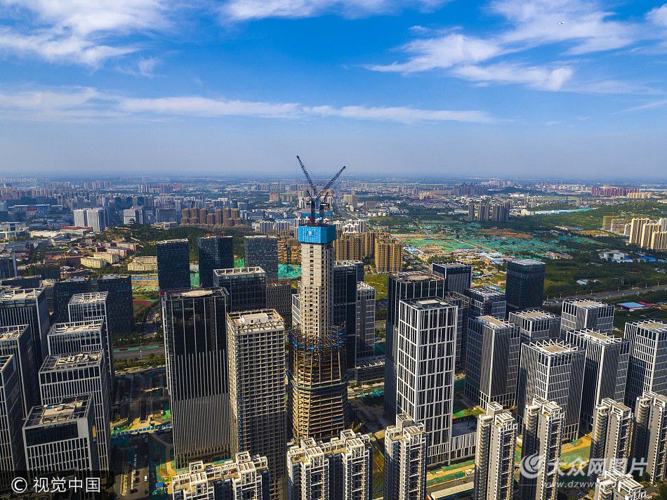 2017年9月20日,濟南。航拍高新區(qū)漢峪金谷山東第一高樓。