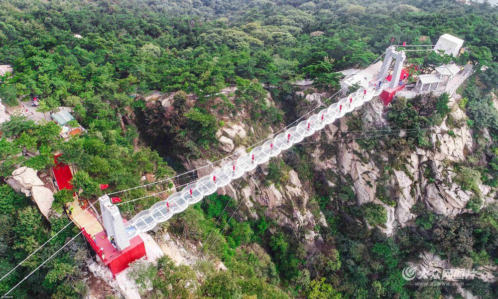 國慶節(jié)前夕,山東臨沂沂蒙山龜蒙景區(qū)160米長的3D玻璃橋投入使用。據(jù)了解,這座橋建設(shè)在海拔1000多米的蒙山山峰上,由鋼繩及數(shù)百塊全透明鋼化玻璃構(gòu)造而成,橋兩端設(shè)計(jì)3D地貼畫面。游客走在橋上好似行在空中,驚險(xiǎn)刺激。