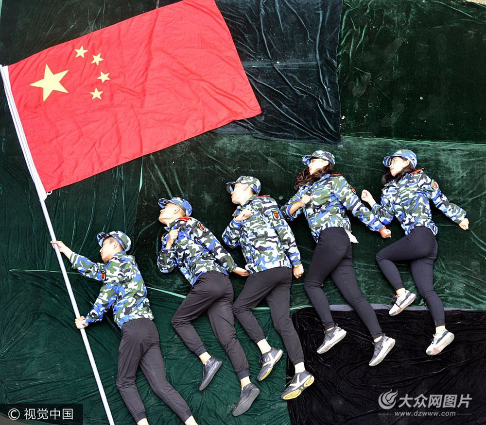 2017年9月30日,山東聊城,多地學(xué)生舉行了形式多樣的活動(dòng),迎接國慶的到來。聊城大學(xué)的大學(xué)生們舉辦了“我和國旗合個(gè)影”愛國主題活動(dòng),新一屆大學(xué)生們通過和國旗花樣合影、創(chuàng)意擺拍,共同感受十一愛國情懷,讓“十一”更具紀(jì)念意義。山東聊城市茌平縣賈寨鎮(zhèn)中心小學(xué)的600多名師生則擺成“祖國萬歲”、“國慶”拼字的方式慶祝國慶節(jié)的到來。