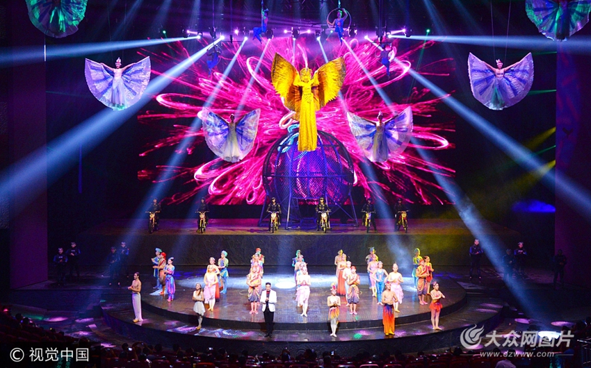 2017年10月1日,國慶長假期間,河南省濮陽市水秀龍珠館舉行精彩大型水上雜技《水秀》。表演的空中飛人、空中跳水、空中飛車、高空獨(dú)輪綱絲騎車、籠中摩托飛騎等節(jié)目,其驚險(xiǎn)刺激令人驚詫不已。觀眾身臨其境,如夢如幻,潮起潮涌,雜技演員驚險(xiǎn)表演的動(dòng)作,讓現(xiàn)場的觀眾發(fā)出陣陣的掌聲,場面非常震撼。