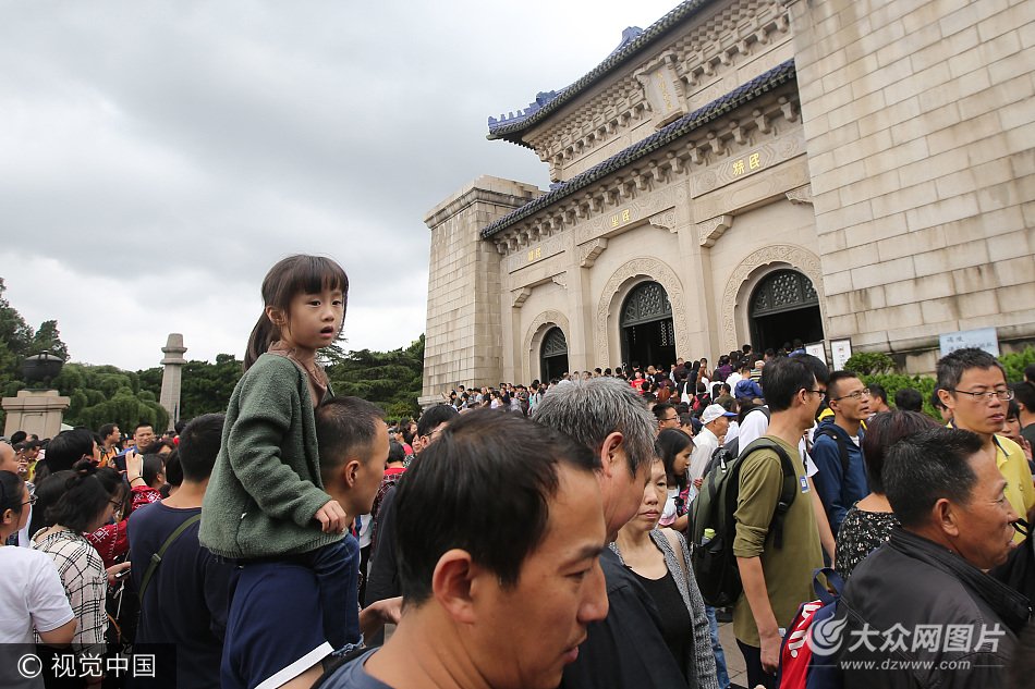 2017年10月3日,大批游客涌進南京中山陵參觀。當日是國慶長假第三天,南京中山陵園風景區(qū)迎來“井噴”客流。據(jù)悉,面對不斷涌入的各地游客,中山陵園風景區(qū)聯(lián)合當?shù)毓、交管投入大批警力維持秩序,此外,近百名大學生志愿者、400名保潔員、70名導游員、4個醫(yī)療救護點每日準時到崗,為游客保駕護航。