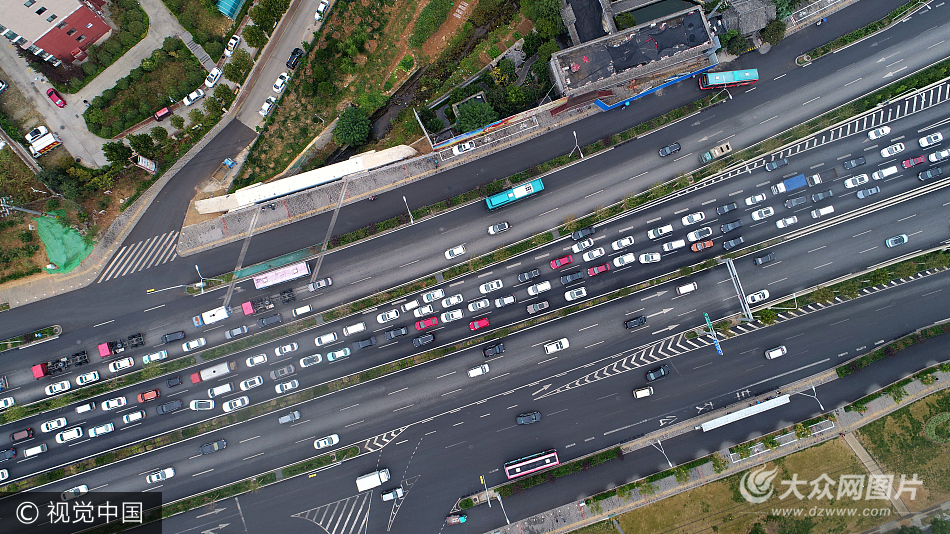 2017年10月3日,山東省濟(jì)南市,在市區(qū)南大門的英雄山立交橋南下橋口處,從東、西、北三個(gè)方向行駛而來(lái)的車輛匯聚于此,排起百米長(zhǎng)隊(duì)緩慢通行,通過(guò)路口需要等待2-3個(gè)信號(hào)燈。國(guó)慶長(zhǎng)假第三天,雖然天空飄著小雨,但市民外出旅游的興致未減,自駕前往南部山區(qū)游玩的車輛增多,英雄山立交橋和省道103線車流量大幅增加,部分路段出現(xiàn)短時(shí)擁堵。