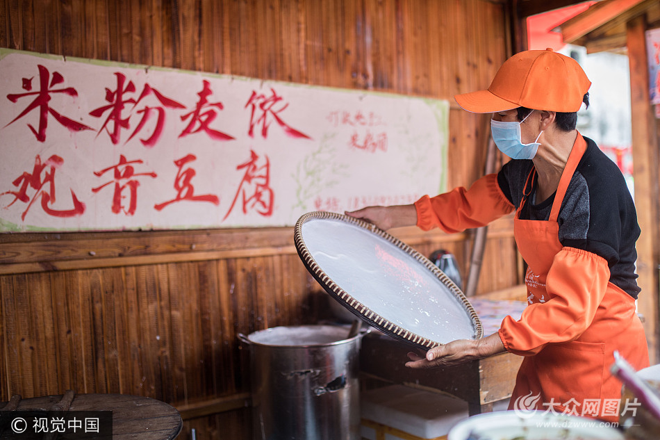 大眾網(wǎng)10月7日訊 這幾年,鄉(xiāng)村旅游興起,許多城里人樂忠于前往山村里游山玩水。浙江省浦江縣虞宅鄉(xiāng)新光村廿玖間里,這兩年因?yàn)猷l(xiāng)村旅游興起,每天都能吸引很多游客。今年黃金周,這里車水馬龍,游客爆棚。鄉(xiāng)村旅游興起也讓一些有手藝有頭腦的農(nóng)民在家門口就賺到了錢。圖為該村村民徐大媽正在制作當(dāng)?shù)貍鹘y(tǒng)小吃“麥衣”,在黃金周這幾天,每天能賣出好幾百個(gè),一天下來能賺上千元。