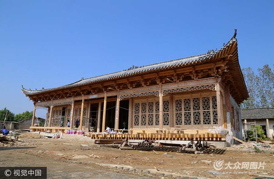 2017年10月8日,在安徽巢湖市柘皋鎮(zhèn)吳昌村,一棟古代宮殿造型的民宅正在建造中,外觀上已基本成型。宮殿分上下兩層,共10間房,總面積400多平米。據(jù)建造者家人和工匠介紹,建造費(fèi)加后期裝修費(fèi),至少需要花費(fèi)300萬元。