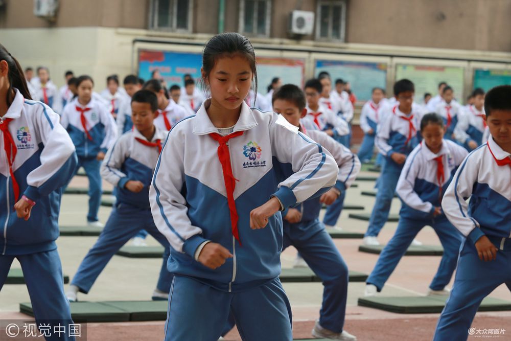2017年10月19日,山東濟南明珠小學根據(jù)小學生身體經(jīng)過教學組多次研究,在強身健體廣播體操加入了中國戲曲元素,變?yōu)閼蚯,讓學生在運動中學習到中國戲曲文化。