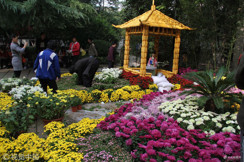 2017年10月19日,在濟(jì)南趵突泉風(fēng)景區(qū)內(nèi),很多人都涌進(jìn)趵突泉看菊展造型,一座由玉米棒子建造的亭子,成為游客觀賞的一大亮點(diǎn)。據(jù)了解,2017年趵突泉菊展將于25日正式開(kāi)幕,小馬、蝴蝶、小白羊、玉米做的房子等吸引眾多游客一睹風(fēng)采。