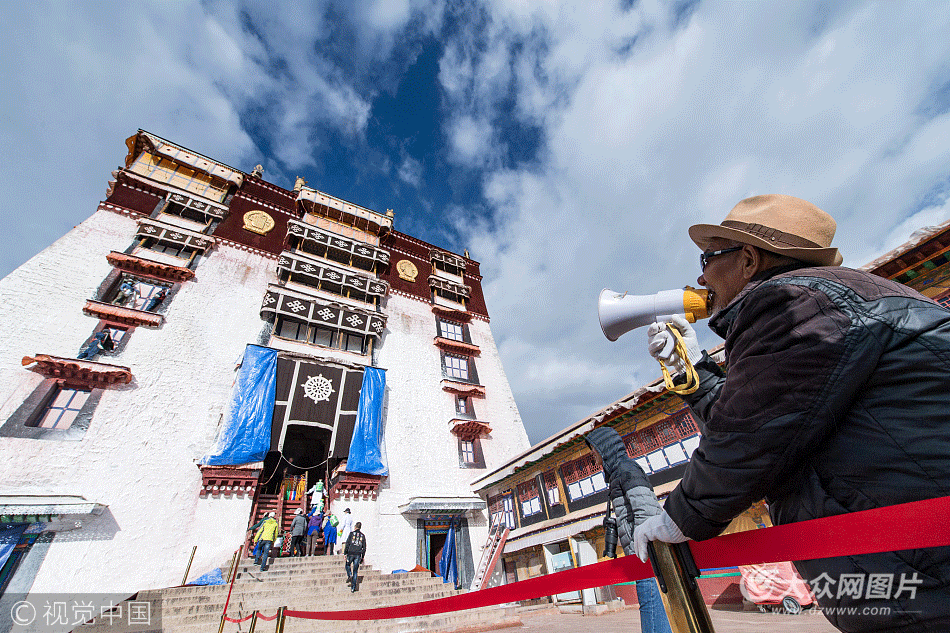 每年秋冬交替時(shí)節(jié),布達(dá)拉宮開(kāi)始一年一度的粉刷工作,布達(dá)拉宮管理處的工作人員和拉薩信眾自發(fā)參與其中。布達(dá)拉宮建成在瑪布日山上,主體分為紅宮和白宮,是一座融宮殿、廟宇和靈塔于一體,規(guī)模浩大的宮殿式建筑群,房屋多達(dá)近萬(wàn)間,建筑面積達(dá)13萬(wàn)多平方米。1994年,布達(dá)拉宮被列為世界文化遺產(chǎn)。 何蓬磊(西藏分社)/中新社/視覺(jué)中國(guó)