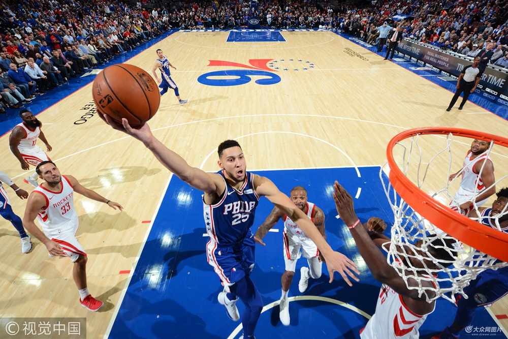 2017年10月25日,美國(guó),17/18NBA常規(guī)賽,休斯頓火箭105-104費(fèi)城76人。來(lái)源:視覺(jué)中國(guó)