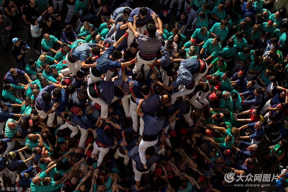 當地時間2017年11月1日,西班牙巴塞羅那賓納戴斯鎮(zhèn),民眾參加疊羅漢活動,慶祝萬圣節(jié)。