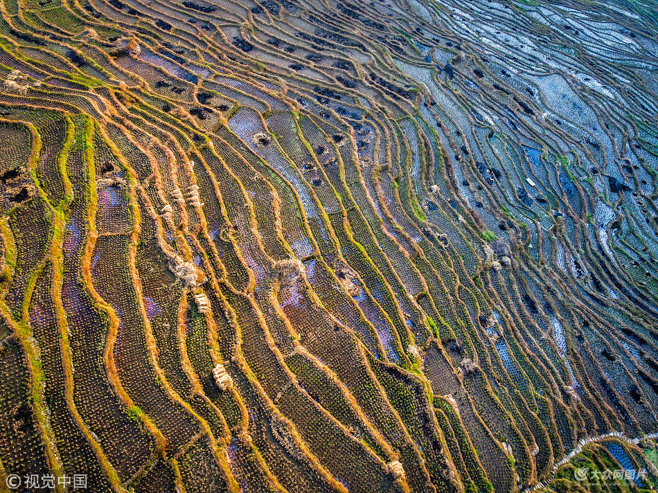 2017年11月4日,航拍秋后廣西龍脊梯田,一樣的梯田,不一樣的色彩。