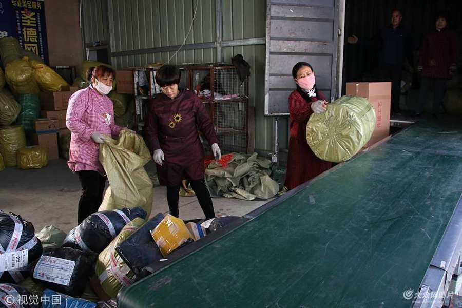2017年11月10日,山東博興,淘寶村的村民們正在忙著備戰(zhàn)雙11。剛剛過(guò)去的2017“雙十一”電商巨頭再次刷新歷史記錄,交易額達(dá)2953億元。