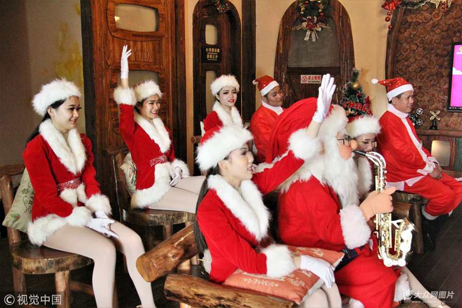 2017年12月8日,廣東佛山,長鹿休博園首期培訓(xùn)班開班,吸引了10多名其他景區(qū)扮演圣誕老人與社會(huì)上兼職扮演圣誕老人、女郎的學(xué)員過來參加。