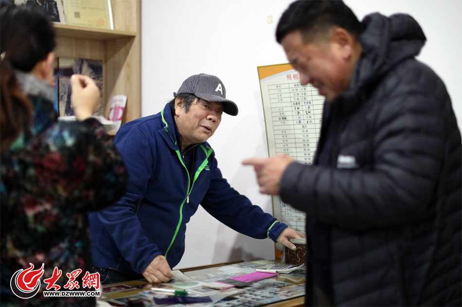 位于濟(jì)南市經(jīng)三路的皇宮照相館內(nèi),63歲的攝影師劉貴林像往常一樣為顧客拍攝肖像照片,并做后期影調(diào)的處理。(亓翔 攝)