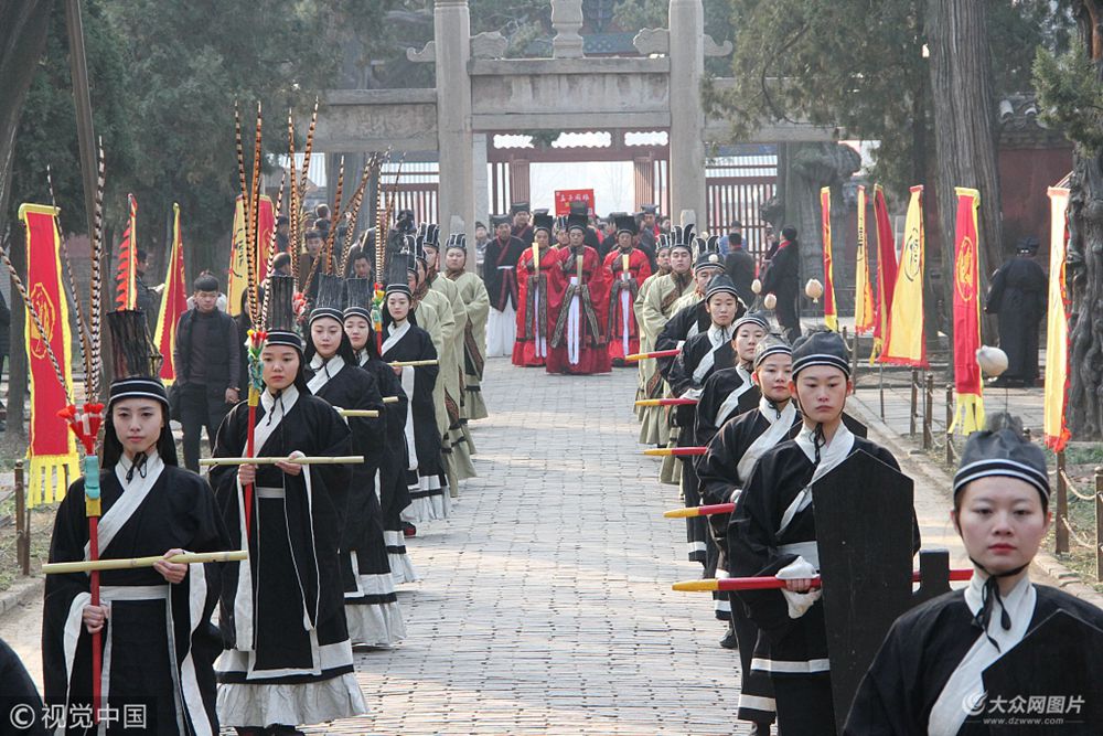 2017年12月22日,山東濟(jì)寧,2017年冬至丁酉祭孟大典隆重舉行,千余名教師同孟氏宗親同祭孟子。