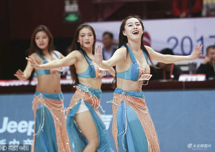 2017年12月22日,山東省,17/18CBA第19輪,山東高速Vs天津榮鋼,啦啦隊寶貝大秀美腿展異域風情。