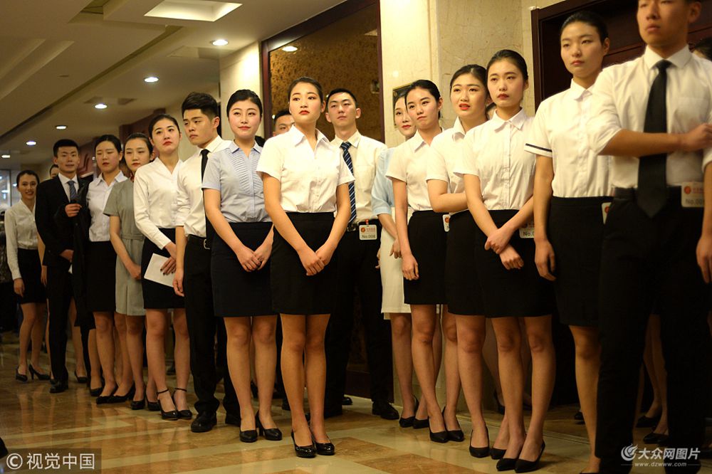 2018年1月31日,山東省濟(jì)南市,國內(nèi)9家航空公司聯(lián)合來濟(jì)南招聘空中乘務(wù)員,招聘現(xiàn)場吸引了600多名帥哥美女前來報名,由于報名人數(shù)較多,報名現(xiàn)場會議室和走廊里全部坐滿了人,女孩們席地而坐化妝或休息,等待進(jìn)場面試。