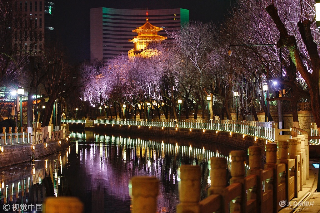 2018年2月1日,濟(jì)南,備受矚目的“一湖一環(huán)”景觀照明項(xiàng)目經(jīng)過前期的燈具效果調(diào)整和光影顏色亮度調(diào)試,已基本具備運(yùn)行條件,當(dāng)晚進(jìn)入試運(yùn)行階段。今后市民每晚都可步行或乘船沿途觀賞如夢(mèng)如幻、如詩如畫的燈光美景了。