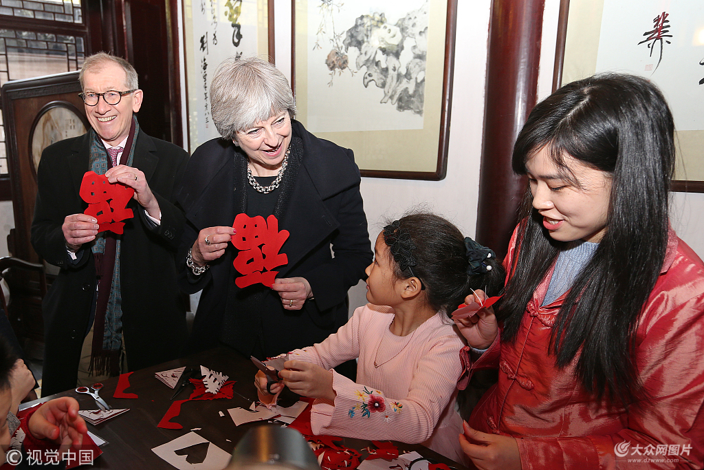 英國首相特蕾莎·梅到訪上海 偕夫游覽豫園學(xué)剪“福”字
