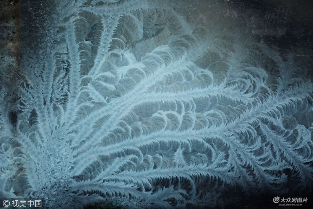 2018年2月4日,在濟南寬厚里老街巷里,以戶外玻璃櫥窗上出現(xiàn)冰花,如同“奇幻世界”一般,看起來十分漂亮。每個玻璃上呈現(xiàn)不一樣的抽像圖案,如同自然界藝術(shù)家在玻璃上描繪絕美畫卷。