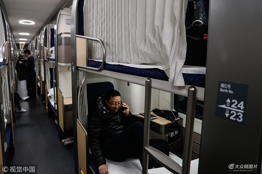 2018年2月7日晚,一列采用全新設(shè)計(jì)“雙層”臥鋪動(dòng)車從上海站始發(fā)前往北京,這也是該車型加入“春運(yùn)大軍”的第一年。與以往傳統(tǒng)臥鋪車廂有很大不同,該車廂中間設(shè)為通道,兩側(cè)鋪位采用縱向雙層布置,不僅環(huán)境舒適,而且每個(gè)鋪位都是一個(gè)小“包間”,舒適性、私密性大大提升,堪稱“移動(dòng)賓館”。