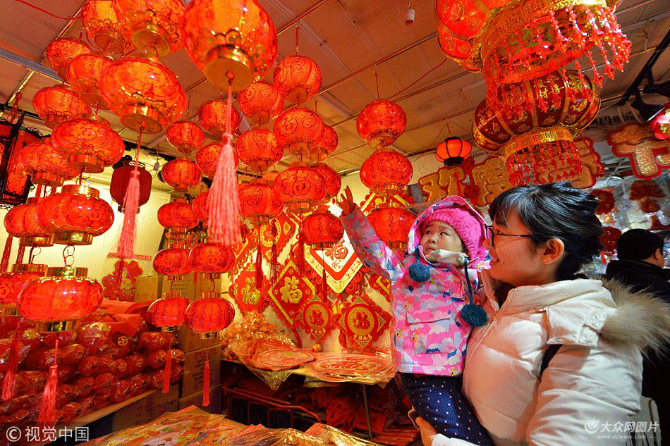 2018年2月10日,春節(jié)臨近,山東青島一處小商品批發(fā)市場掛飾旺銷,市民開始選購燈籠、掛飾、對聯(lián)等春節(jié)用品,準(zhǔn)備迎接即將到來的新春佳節(jié)。