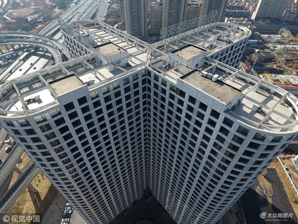 2018年2月22日,鄭州,一座“X形”大樓酷似一只蝴蝶散落城市街頭,樓體表面密密麻麻綴滿3000余扇窗戶、幾乎沒有空余墻面,整體造型十分別致。