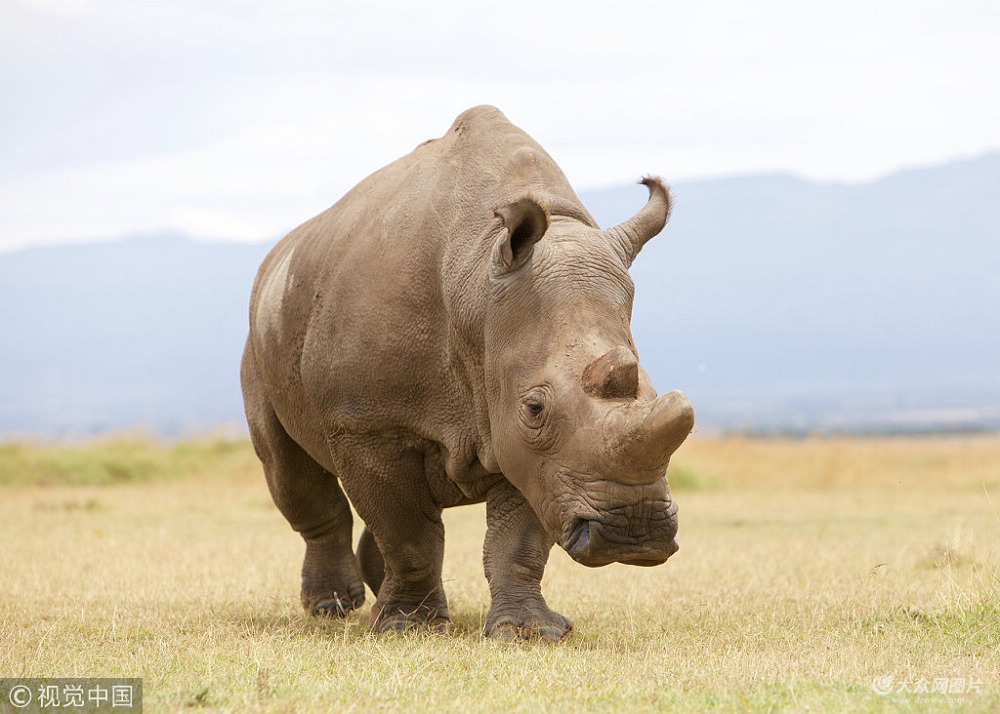 據(jù)外媒報道,肯尼亞研究人員稱,由于健康狀況“明顯惡化”,世界上最后一頭雄性北方白犀!疤K丹”在19日被實施安樂死。 (資料圖)