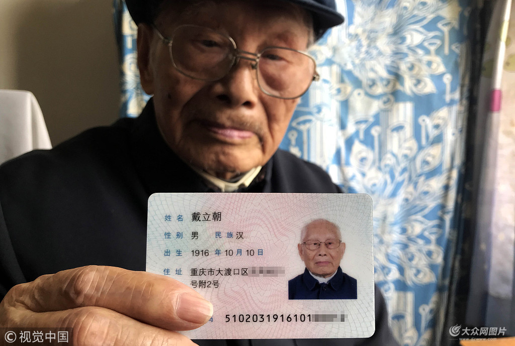 戴立明老人出生在1916年,如今已有102歲。