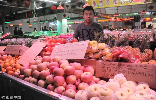 水果攤前擺放勵(lì)志英文短句 濟(jì)南小哥成網(wǎng)紅