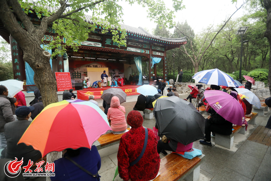 大眾網(wǎng)濟(jì)南4月13日訊 一年一度的千佛山“三月三”民俗文化廟會(huì)今天拉開帷幕,雖然廟會(huì)首日迎來了降溫和陰雨天氣,但豐富的美食和多樣的文化產(chǎn)品仍吸引來不少游客,更有很多市民打著雨傘來為廟會(huì)上的戲曲演出捧場。(大眾網(wǎng)、山東24小時(shí)記者 亓翔)