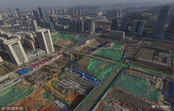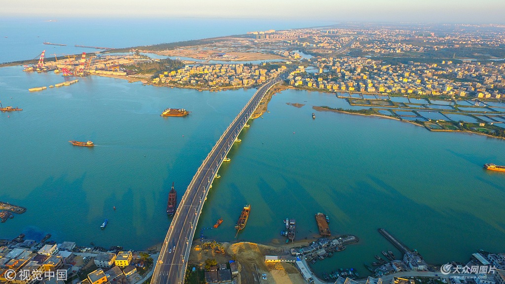 2017年02月18日,海南省?谑,高空鳥瞰?谑忻捞m區(qū)如意島跨海大橋一帶景觀。