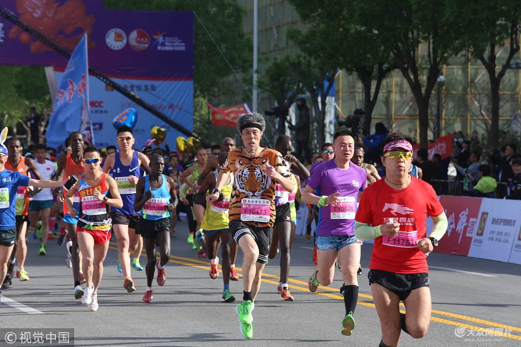 2018年4月15日,2018泰山國際馬拉松賽在泰山國際會展中心起跑。 圖片作者:李英霞/視覺中國