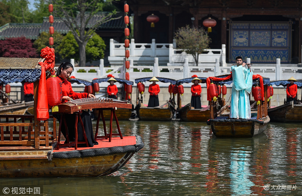 當(dāng)日是農(nóng)歷三月初三,山東臺兒莊古城景區(qū)員工在古運(yùn)河游船上載歌載舞,通過才藝表演、情歌對唱及互贈香囊等文化展示活動,歡慶“三月三”的到來。
