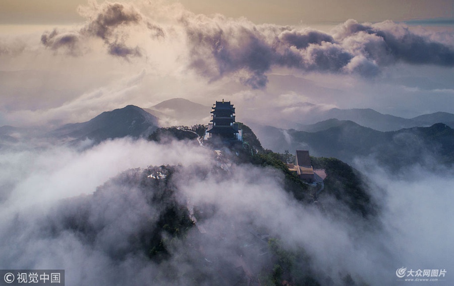2018年6月26日,受降雨天氣影響,山東省臨沂市綿延百里的沂蒙山云海翻騰,層層山巒時隱時現(xiàn),如夢似幻,宛如仙境。