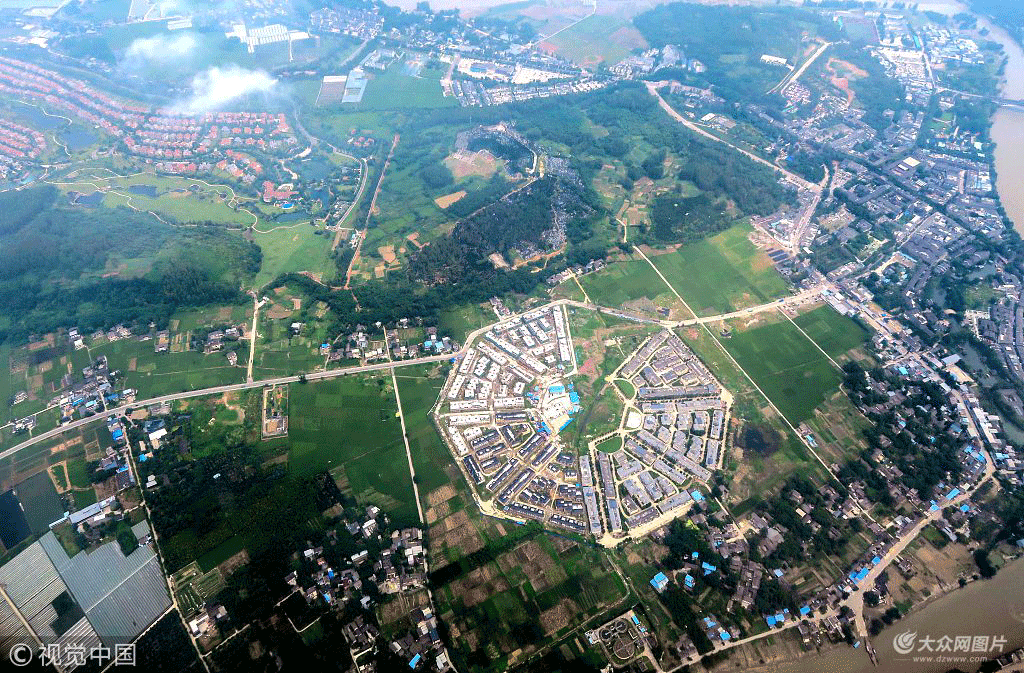2018年7月31日,從飛機上俯瞰成都一處正在建設中的“八卦”布局小區(qū)。從空中觀察,該小區(qū)地勢平坦,別有一番魅力和韻味。
