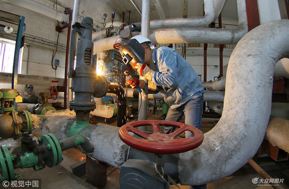 2018年8月6日,在山東煙臺(tái)500供熱有限公司長(zhǎng)城供熱站,工作人員在焊接管網(wǎng)設(shè)備標(biāo)牌。三伏時(shí)節(jié),山東煙臺(tái)迎來(lái)供暖100天倒計(jì)時(shí),在煙臺(tái)500供熱有限公司各級(jí)供熱站和管網(wǎng)技改現(xiàn)場(chǎng),工作人員冒高溫排查管線,保養(yǎng)維修設(shè)備,確保今冬供暖質(zhì)量。據(jù)了解,山東省煙臺(tái)市每年11月初開(kāi)始供暖試壓,11月15日正式供暖。