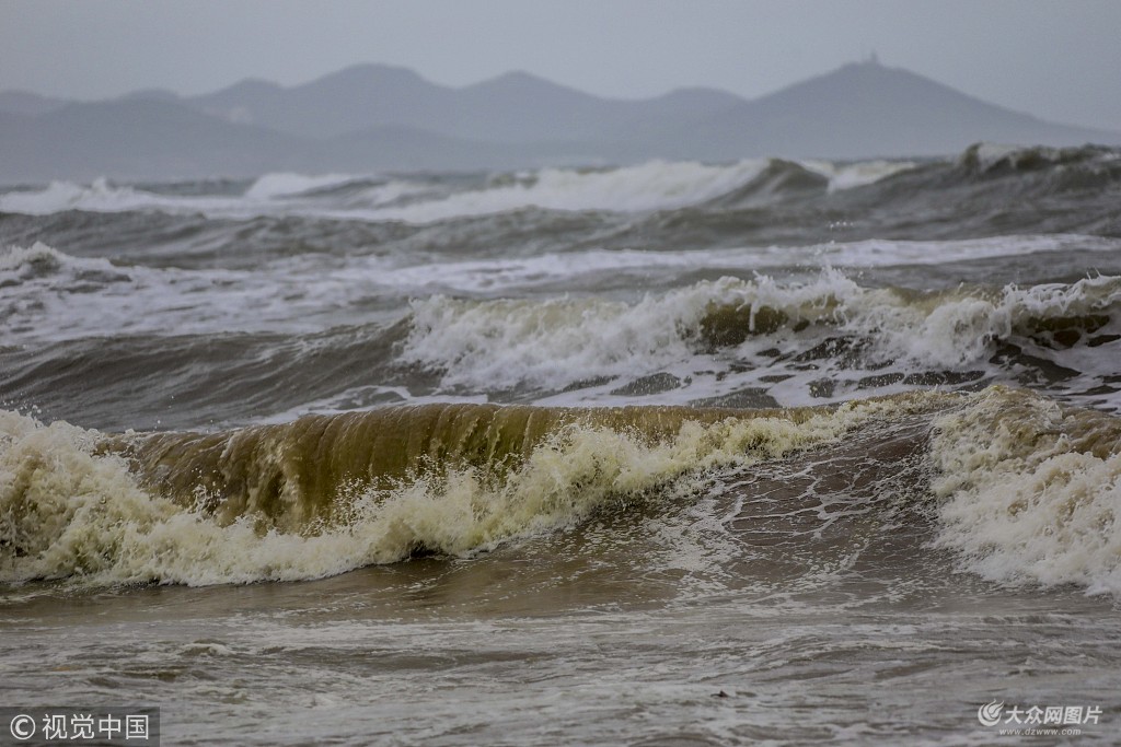 2018年8月13日下午,受臺(tái)風(fēng)“摩羯”影響,青島連三島海濱巨浪滾滾,景象壯觀。