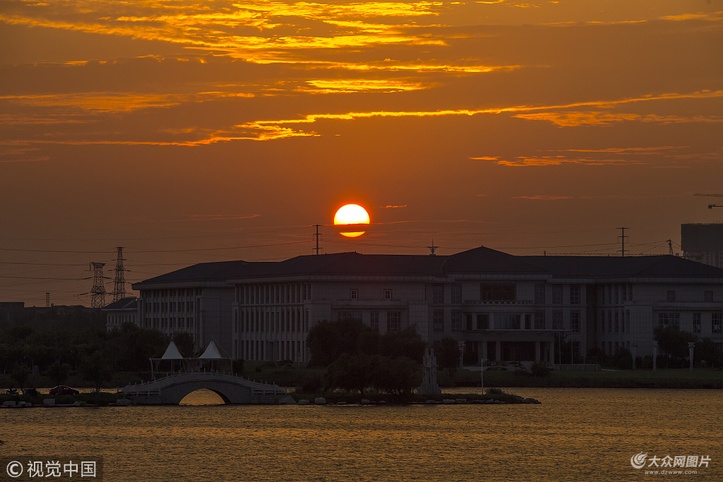 山東濱州傍晚現(xiàn)火燒云景觀 五彩斑斕美不勝收